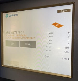 福生の西友にあったので、早速、大量に貯め込んだ小銭を両替してみました。